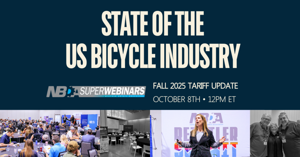 Shifting tariffs and trade policies continue to influence the U.S. bicycle market. The NBDA’s State of the Industry: Fall 2025 webinar will bring you the insights you need to adapt and plan ahead.